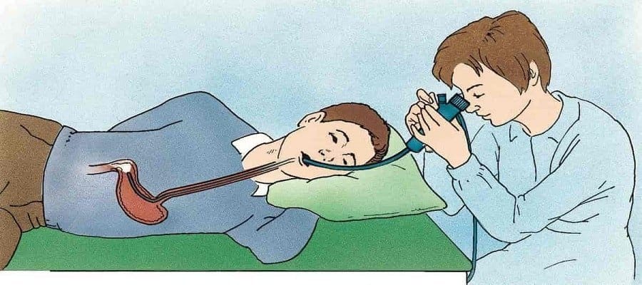 Za vrijeme pregleda može se normalno disati, pregled traje od 1 do 3 minute. Pregled je blago neugodan. Gastroskopija se obavlja dok ležite na boku. Nakon postavljanja usnika (mala tuba koja se zagrize i drži zubima), liječnik će kroz njega pažljivo uvesti endoskop u usta. Ponekad je potrebno, prije pretrage, grlo pošpricati lokalnim anestetikom kako bi se smanjio osjet i refleks povraćanja. Kod ulaza endoskopa upuhuje se zrak kako bi se prazni želudac napuhnuo te da bi se sluznica želuca što bolje vidjela. Kamera na vrhu endoskopa šalje sliku unutrašnjosti na ekran koji gleda liječnik i tako pregledava jednjak, želudac i tanko crijevo. U slučaju potrebe, liječnik će uzeti uzorak tkiva želuca (bioptat) za patohistološku analizu i/ili ukloniti polipe i to je bezbolno i brzo.